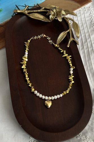 Collar "Corazon de Oro" Collar de perlas y oro,