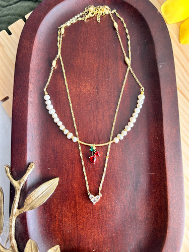 Collar " Corazón de Fresa" Collar en perlas con colgante de fresas