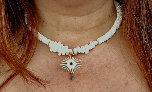 Choker Sol del Mar, Choker en Shell y coral bambu crema colgante sol